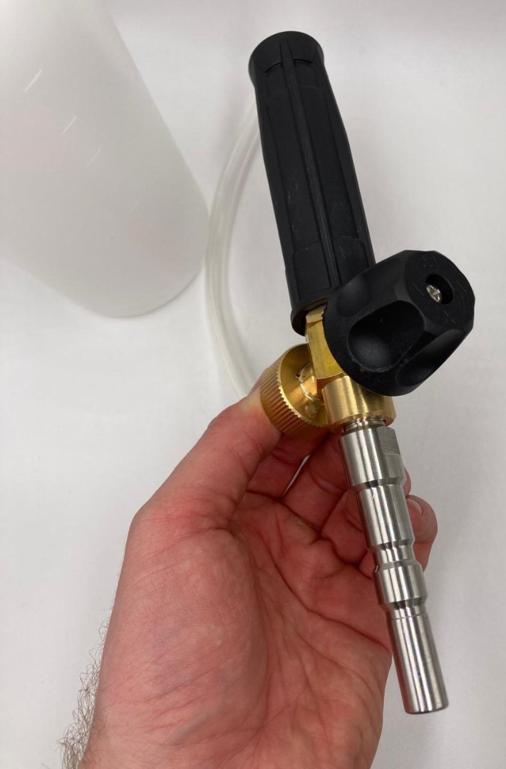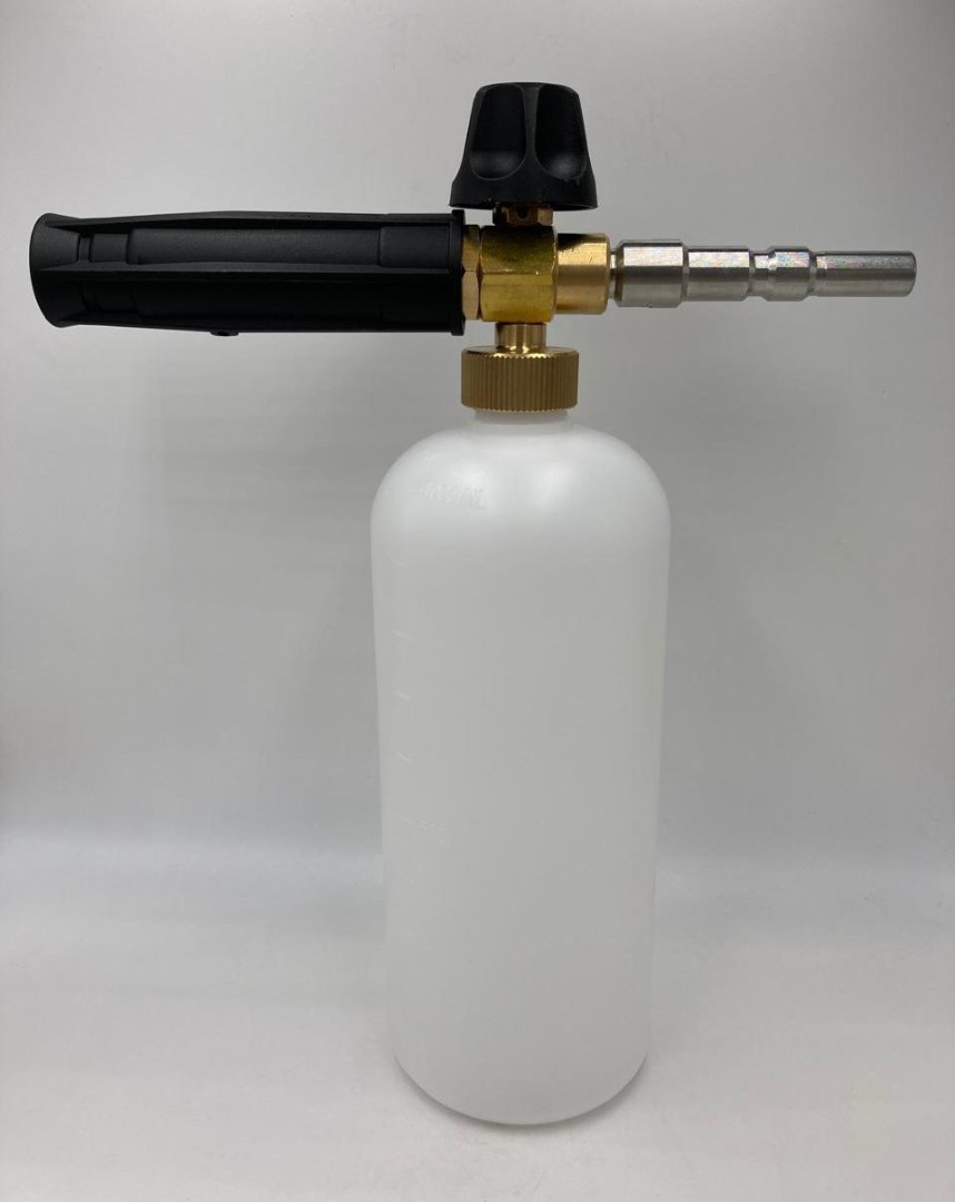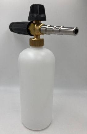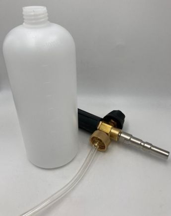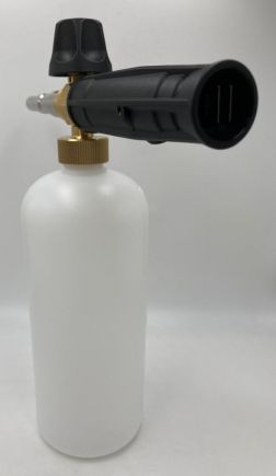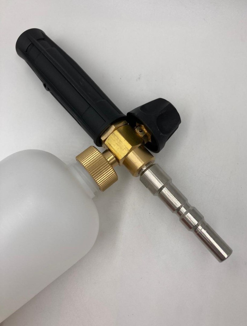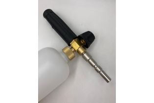 Профессиональная пенная насадка LS3 хорошо зарекомендовавшая себя, как надежный пенораспылитель. Насадка подключается к пистолету высокого давления с помощью специального адаптера. Вода смешивается с воздухом и моющим средством и на выходе образует густую пену. Используется для нанесения любых средств для бесконтактной мойки. Пенообразователь изготовлен из латуни, бачок и защита насадки - из пластика.