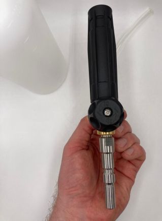 * Обязательно промывайте пенную насадку чистой водой после работы с пеной. Для этого просто открутите пенный бачок с бесконтактным моющим средством от пенной насадки, нажмите на курок пистолета и распыляйте примерно полминуты. Самая частая причина выхода из строя пенной насадки - пенная таблетка "забилась" насохшим мыльным моющим раствором. Поэтому эта несложная операция по промывке пенообразующего узла существенно продлит срок службы самой пенной таблетки.