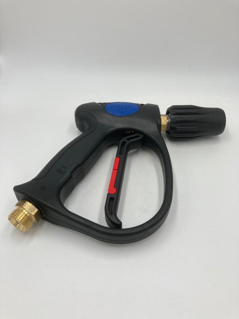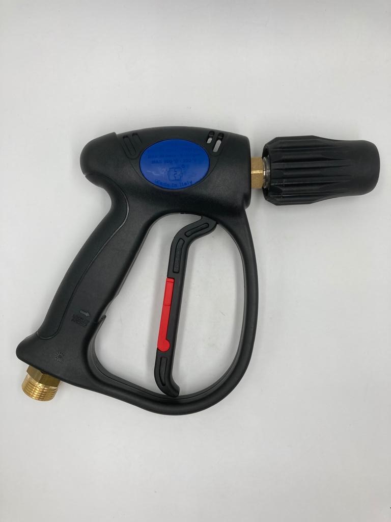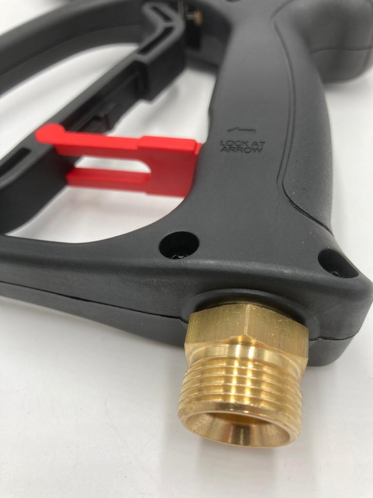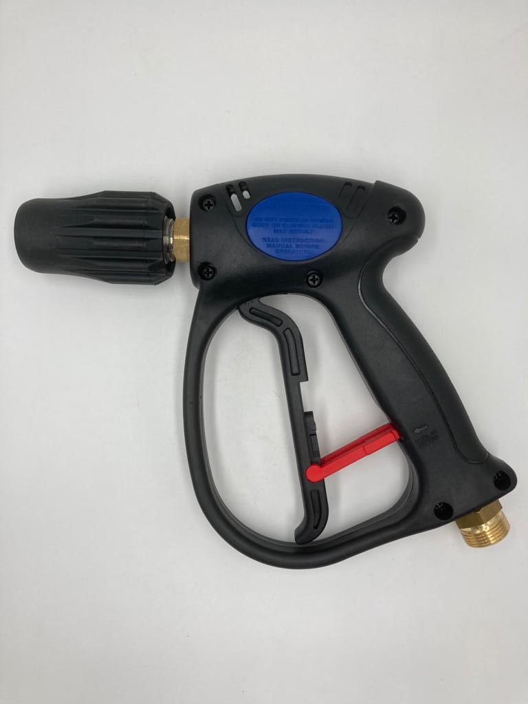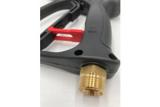Профессиональный пистолет высокого давления Mecline MV925 SWIVEL TOP с поворотным соединением на входе, в сборе с быстросъемной муфтой KW (F) "мама", нержавеющая сталь. Байонетная муфта дает возможность менять насадки простым защелкиванием, без необходимости откручивать и закручивать гайки. Смена насадок происходит лёгким отщёлкиванием штуцера "папа", путём нажатия на муфту байонет "мама". Снятие-установка насадок происходит направленным сдвигом пластиковой (внешней) части байонетной муфты на себя.