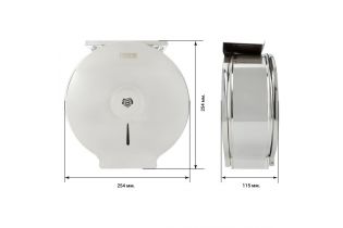 Габариты позволяют использовать рулоны бумаги с максимальным диаметром до 240 мм, Наличие двух втулок 37 и 65 мм позволяет использовать туалетную бумагу с различным внутренним диаметром.