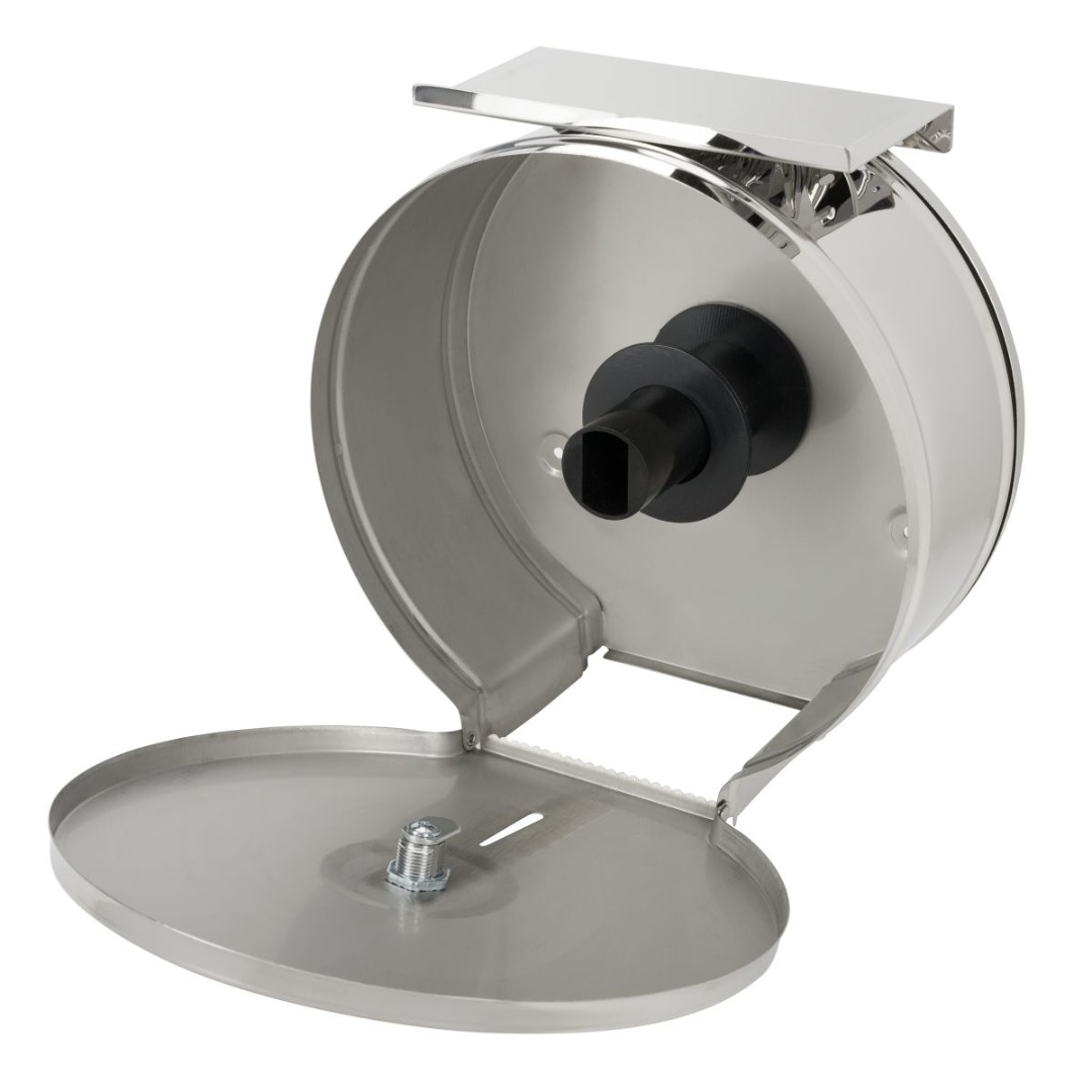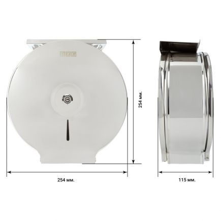 Диспенсер выполнен из нержавеющей стали, с глянцевым зеркальным покрытием.