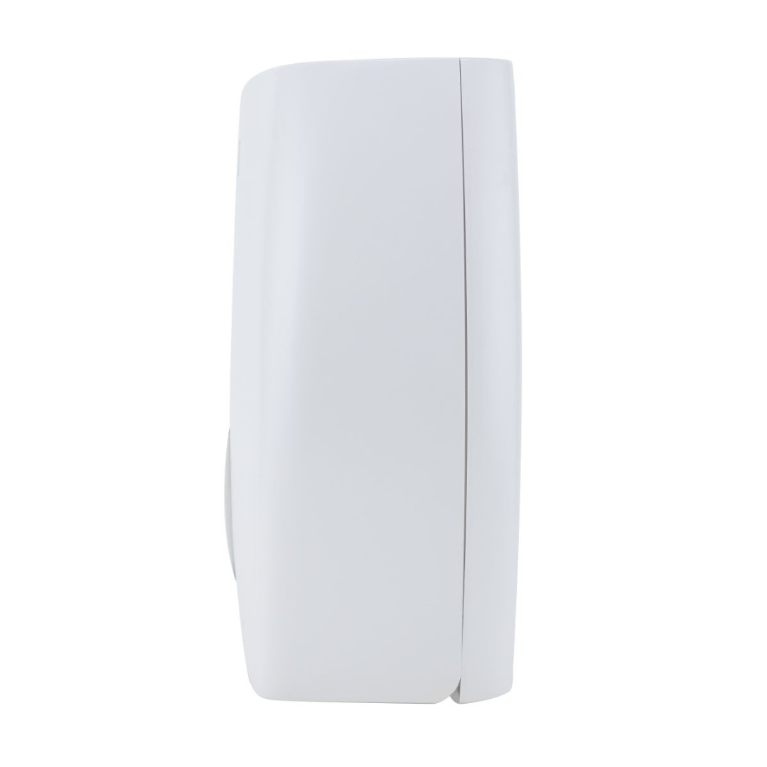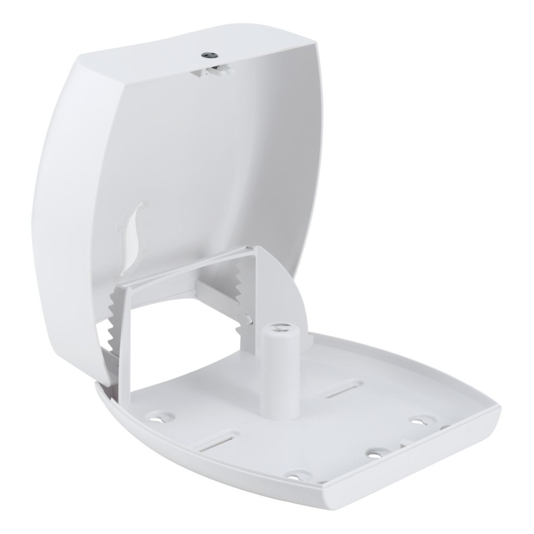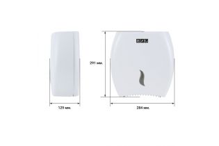 Диспенсер выполнен из ударопрочного пластика ABS белого цвета. Оригинальное смотровое окно в виде листка позволяет контролировать наличие бумаги в диспенсере.
