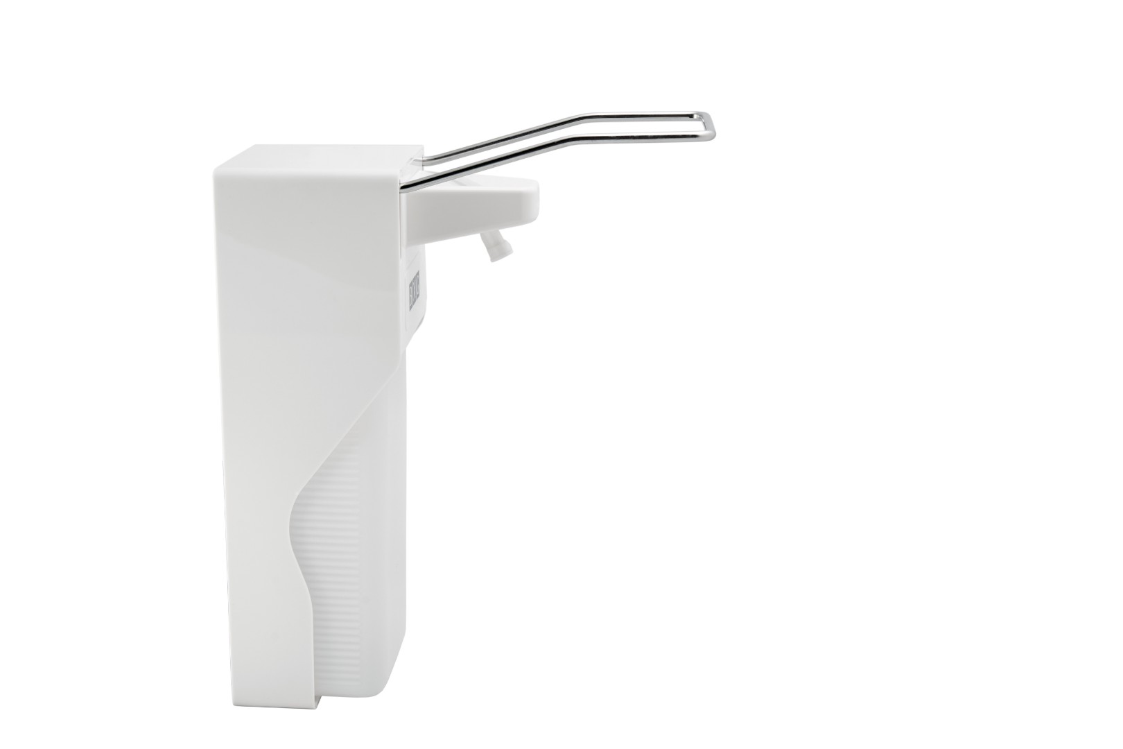 Гигиеническая подача средства осуществляется путем нажатия локтя на рычаг. Механизм работы исключает контакт ладони с поверхностью дозатора, что позволяет использовать его в различных организациях здравоохранения, на предприятиях пищевой отрасли, коммунальных объектах и т.п.