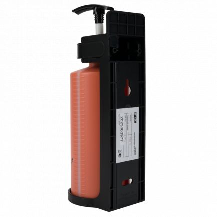 Дозатор выполнен из ударопрочного пластика ABS оранжевого цвета с оригинальным декором мрамора.. Прозрачная шкала на корпусе позволяет визуально контролировать уровень наполнения.