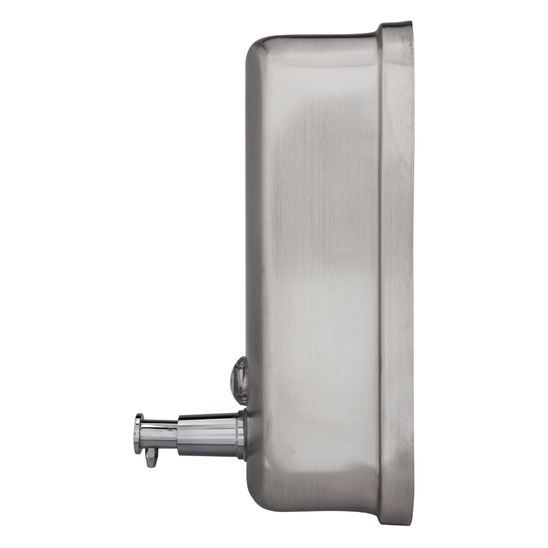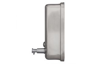 Выполнены из нержавеющей стали с матовым покрытием. Смотровое окно позволяет контролировать уровень жидкого мыла в дозаторе. Дозирующий механизм выполнен из латуни. Надежная и прочная система подачи исключает протекание. Обладает повышенной стойкостью к возникновению ржавчины.
