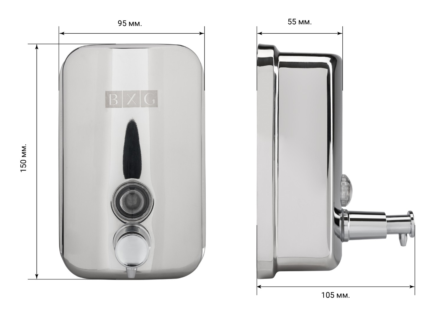 - Надежная система подачи жидкого мыла исключает протекание дозатора.