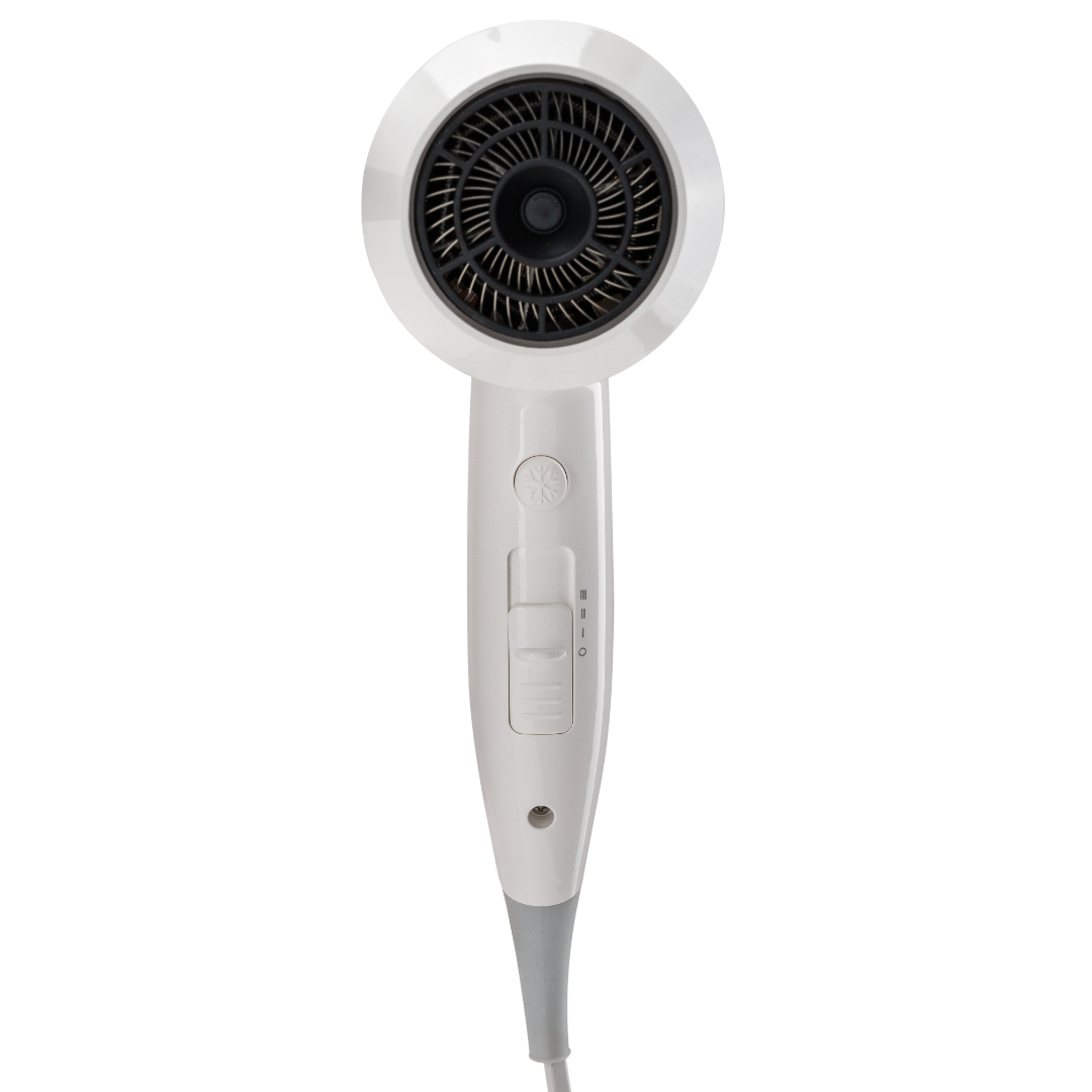 Производительность: Установлен инновационный мотор, который позволяет сушить волосы со скоростью воздушного потока 22,5 м/сек., при мощности 1800 Вт., при этом уровень шума всего 65 db.