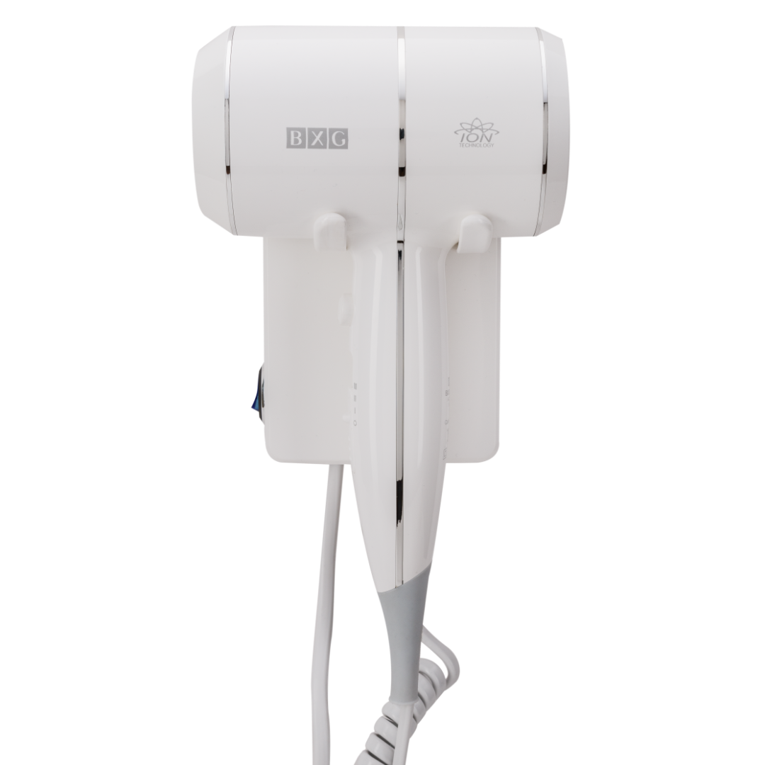BXG-1600Н1 – Мощный надежный фен нового поколения с функцией Ионизации для сушки и укладки волос. Предназначен для использования в номерных фондах гостиниц и отелей. Фен с настенным держателем для удобной и компактной фиксации. Выполнен из высокопрочного пластика ABS в благородном белом цвете.