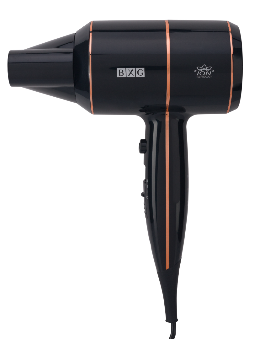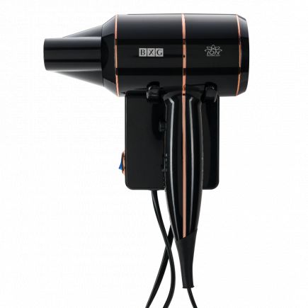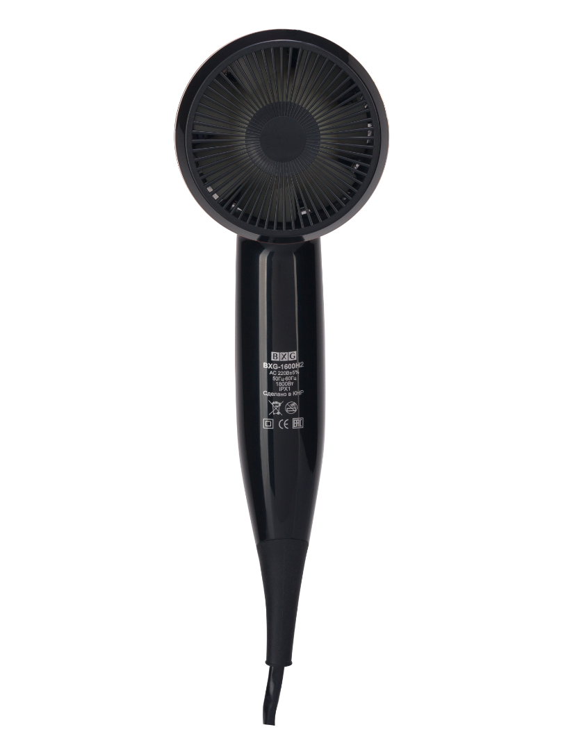 BXG-1600Н2 оснащён функцией автоматического отключения на случай перегрева, короткого замыкания или скачков напряжения в электросети, а также системой блокировки работы фена при размещение его на настенном держателе – фен отключится автоматически.