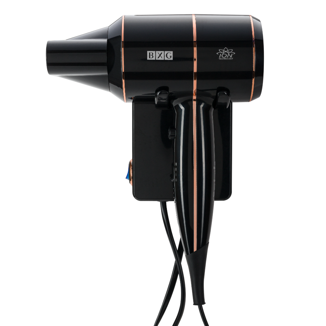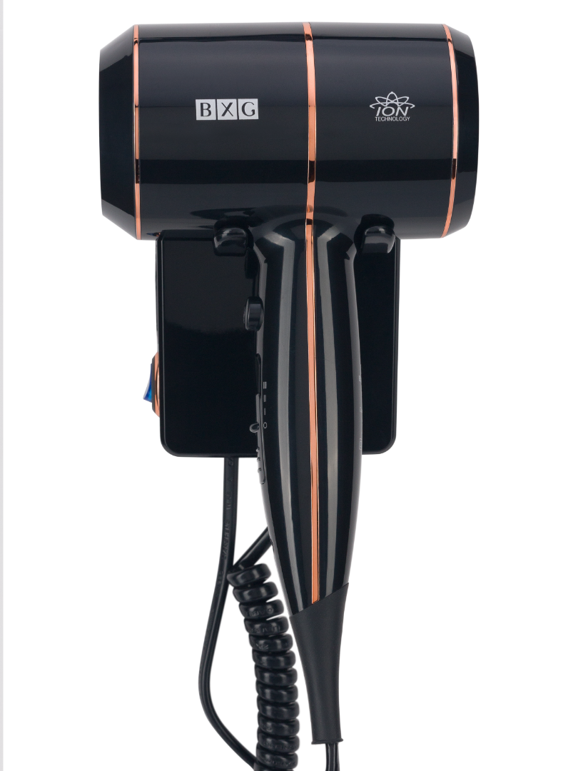 BXG-1600Н2 – Мощный надежный фен нового поколения с функцией Ионизации для сушки и укладки волос. Предназначен для использования в номерных фондах гостиниц и отелей. Фен с настенным держателем для удобной и компактной фиксации. Выполнен из высокопрочного пластика ABS в благородном черном цвете.