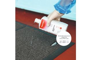 Дезинфекционный мат с открытой петельчатой структурой снижает риск перекрестного загрязнения, дезинфицирует подошвы обуви и колеса тележек.