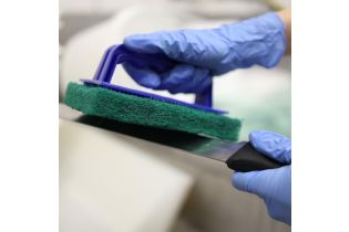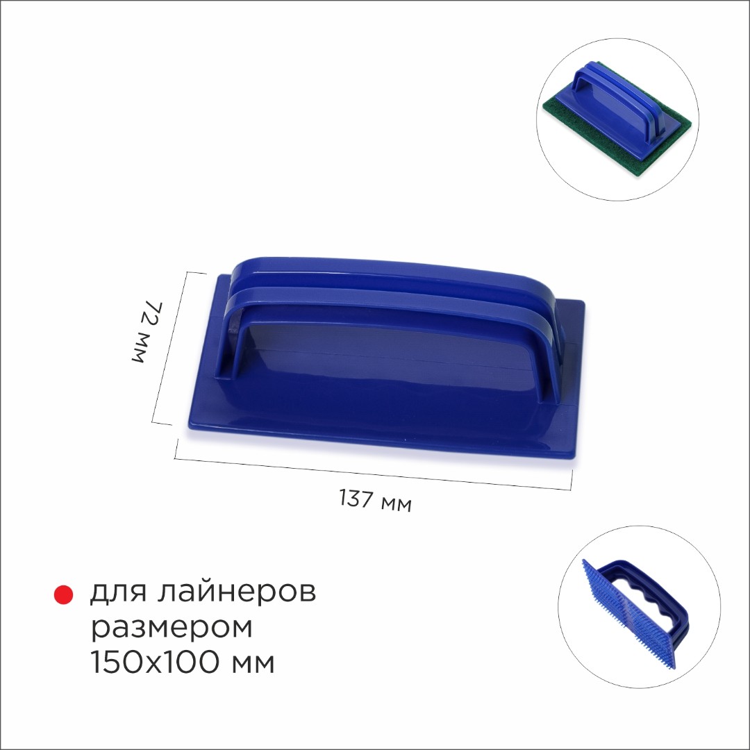 Специальный ручной держатель для лайнера NOBRUSH применяется с целью достижения более эффективной уборки въевшихся загрязнений. Отлично удерживает лайнеры любой абразивности. Лайнер крепится на нижнюю часть держателя и позволяет обрабатывать различные поверхности с большей интенсивностью, оберегая ваши руки от негативного воздействия при уборке.