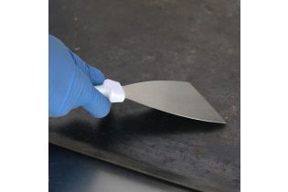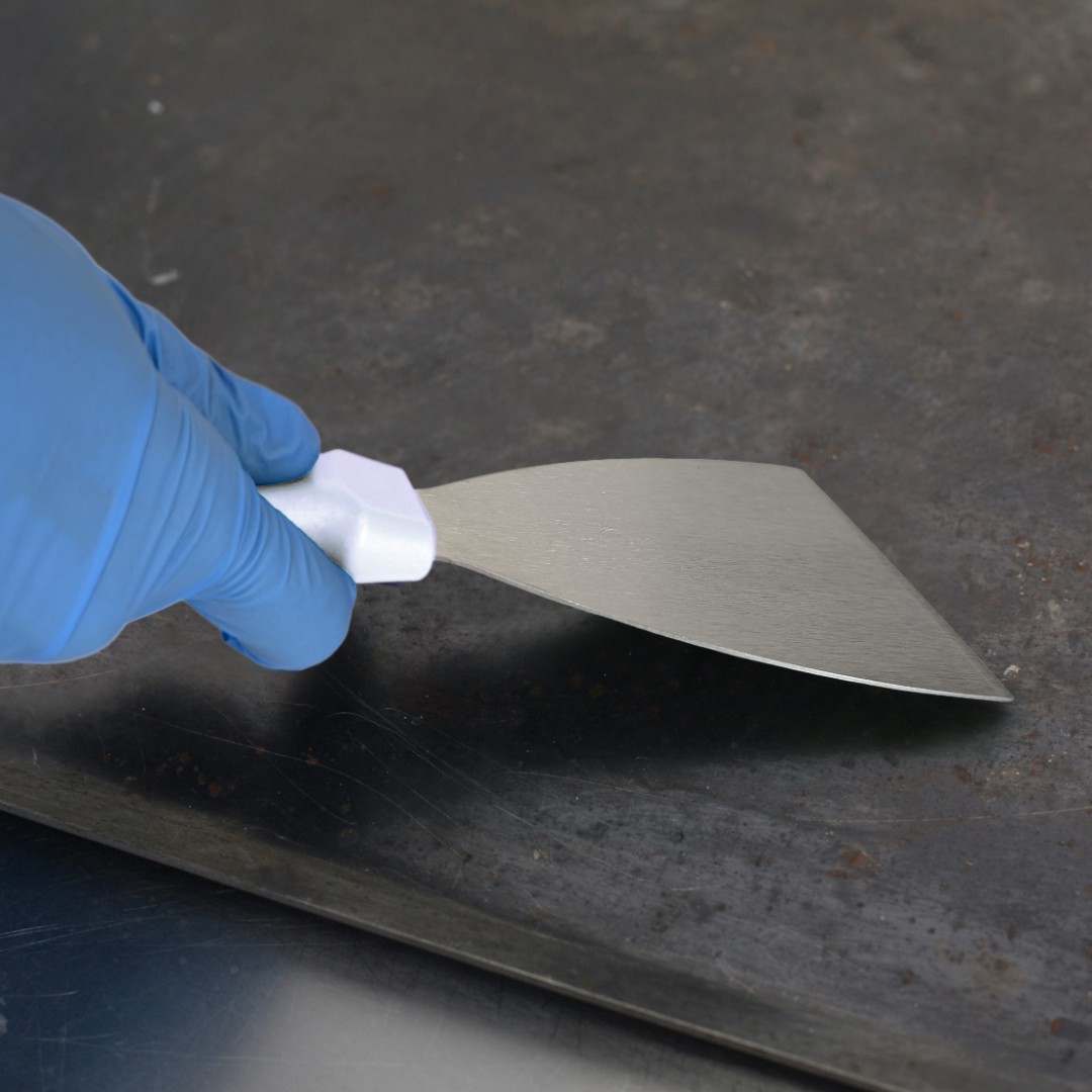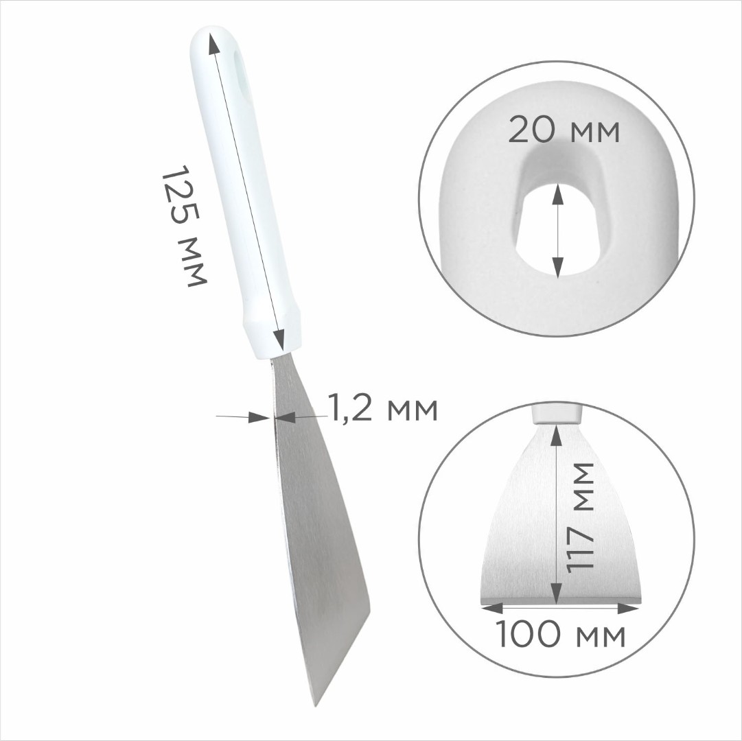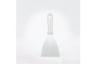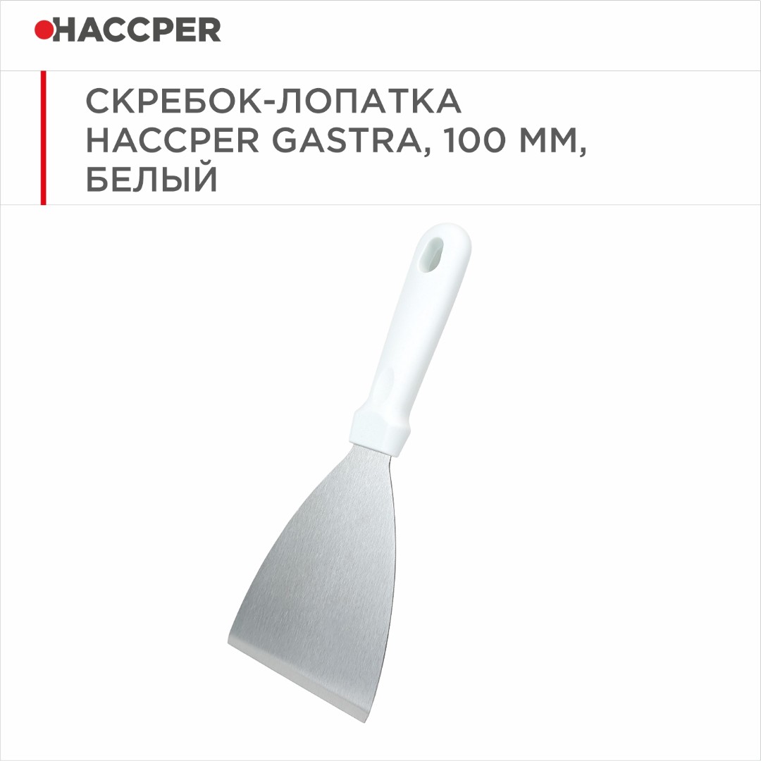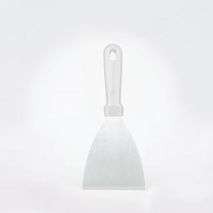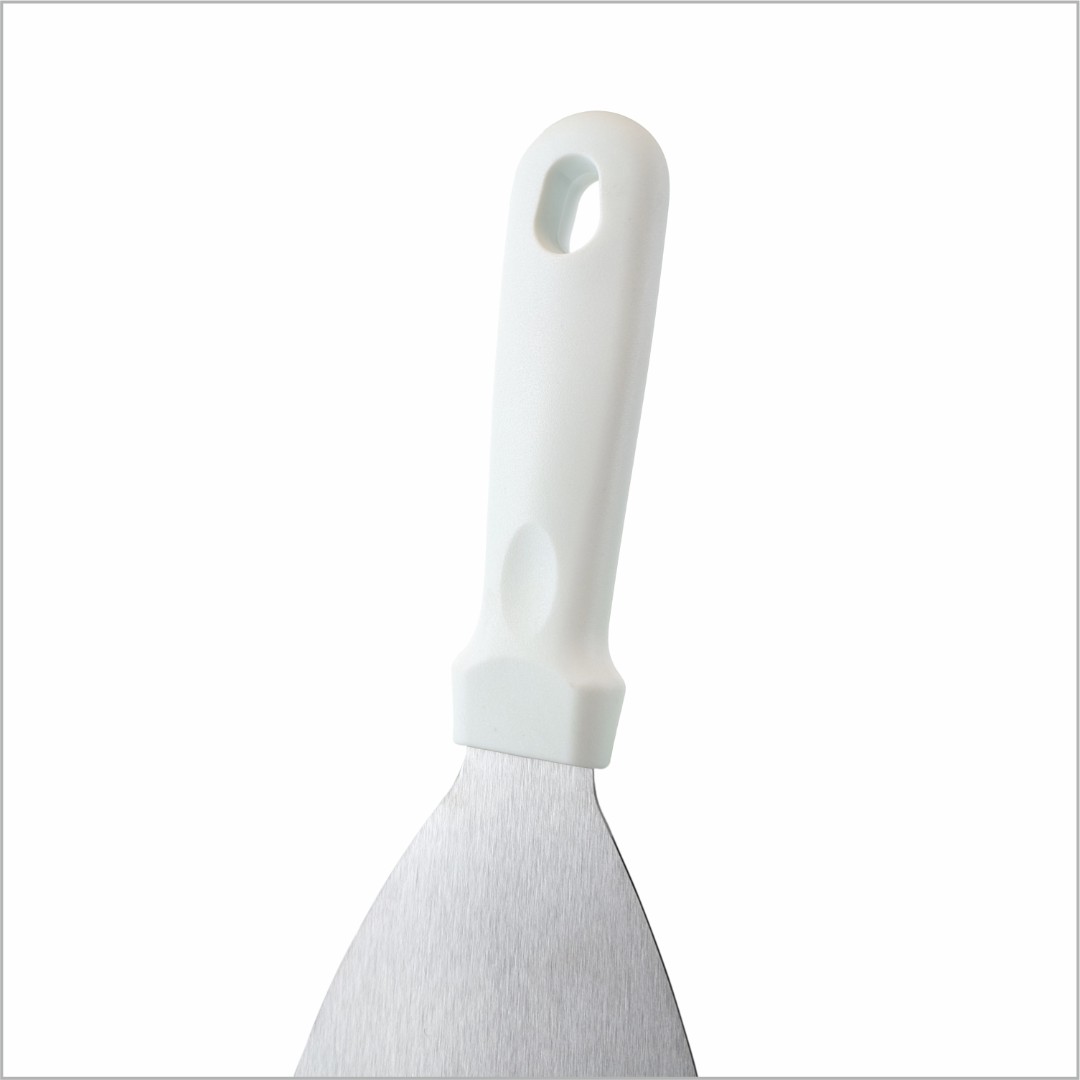 Скребок- лопатка из нержавеющей стали с рукояткой из полипропилена идеально подходит для удаления липких отложений, присохших или подгорелых загрязнений и ингредиентов, а также для переворачивания пищи.