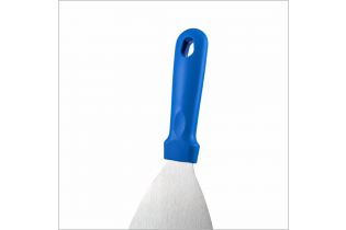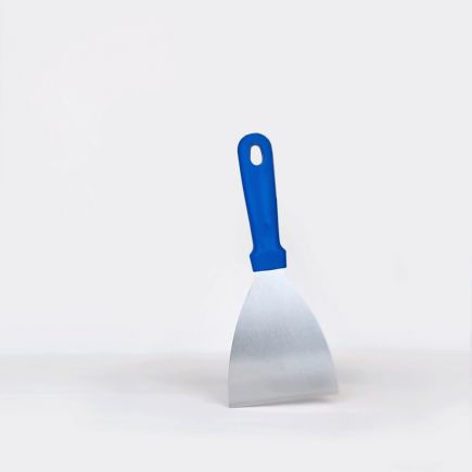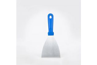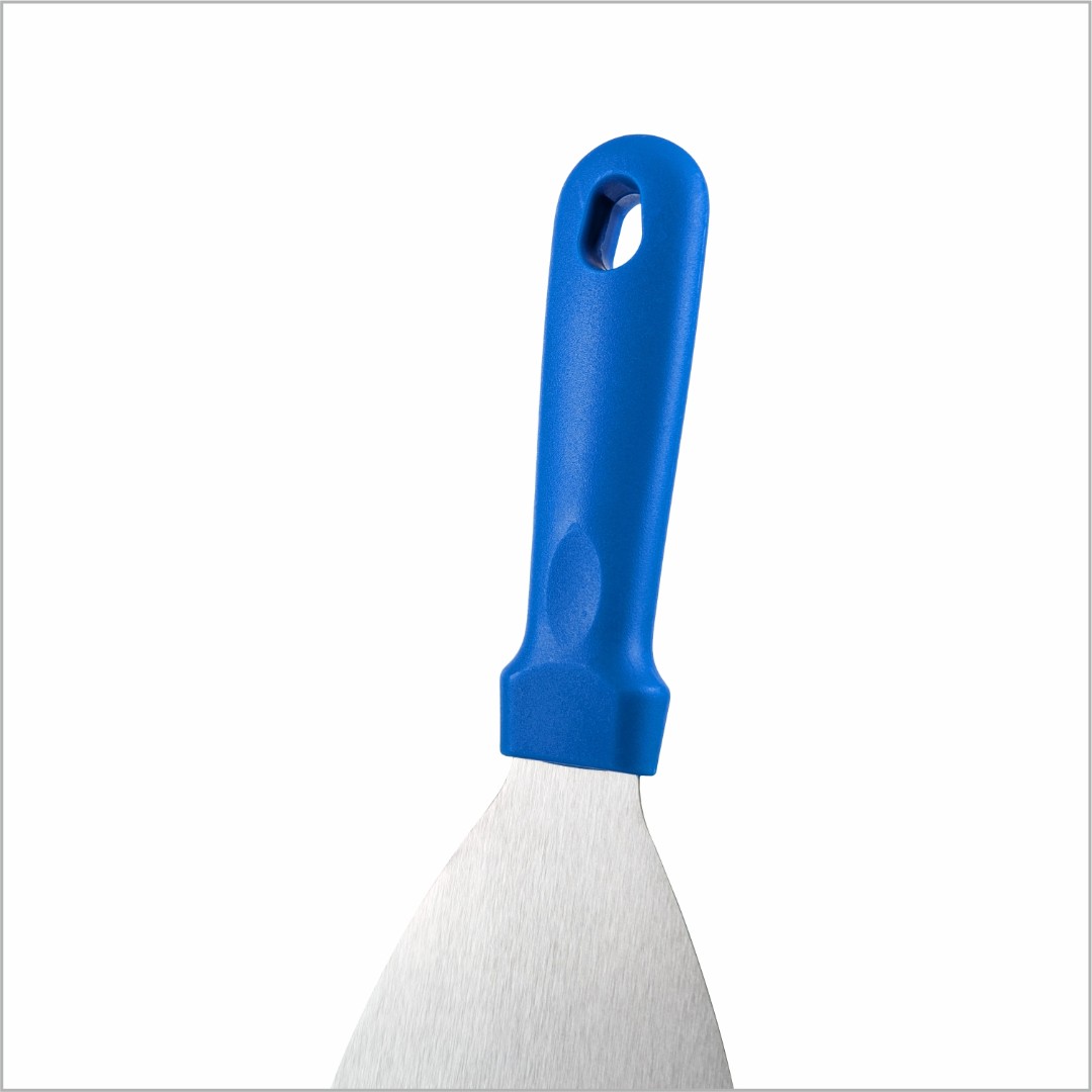 Скребок- лопатка из нержавеющей стали с рукояткой из полипропилена идеально подходит для удаления липких отложений, присохших или подгорелых загрязнений и ингредиентов, а также для переворачивания пищи.