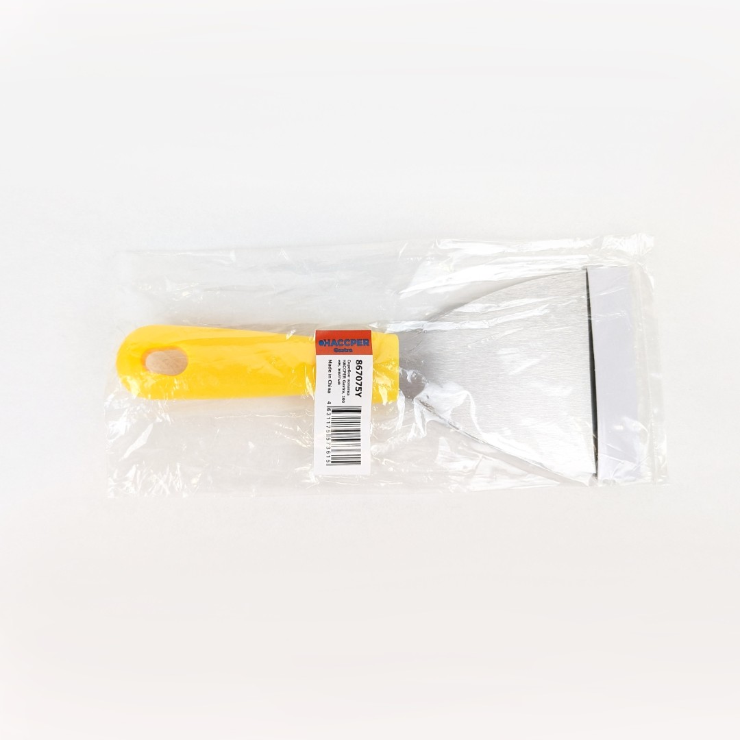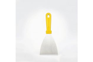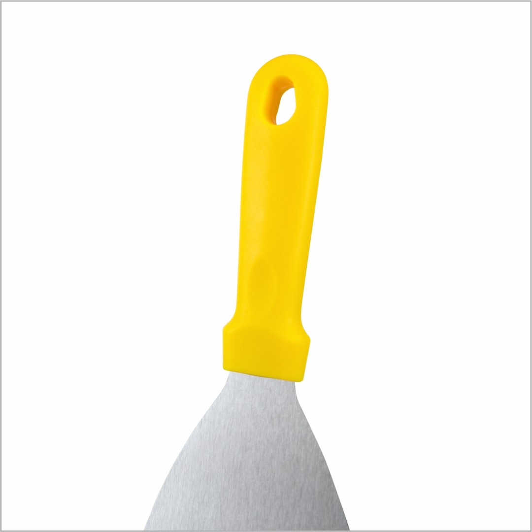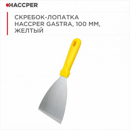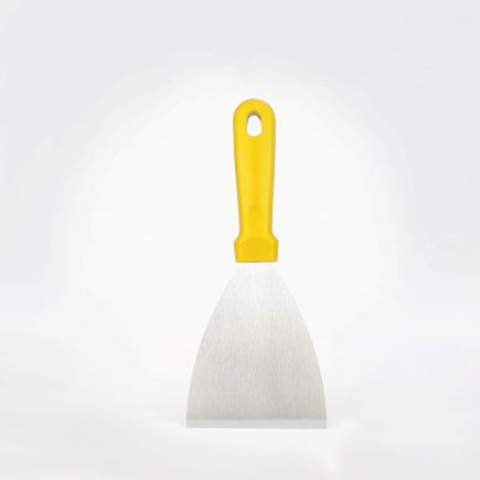 Скребок- лопатка из нержавеющей стали с рукояткой из полипропилена идеально подходит для удаления липких отложений, присохших или подгорелых загрязнений и ингредиентов, а также для переворачивания пищи.