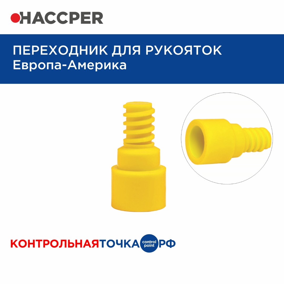 Переходник применяется для крепления рукояток с европейской резьбой к уборочному инвентарю с американской резьбой.