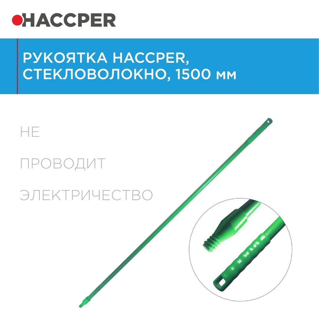 Прочная рукоятка подходит для множества щеток и сгонов, облегчает уборку в труднодоступных местах. Оснащена кольцом для подвешивания, что поможет организовать удобное и компактное хранение уборочного инвентаря. Рукоятка совместима со всеми товарами ассортимента HACCPER.