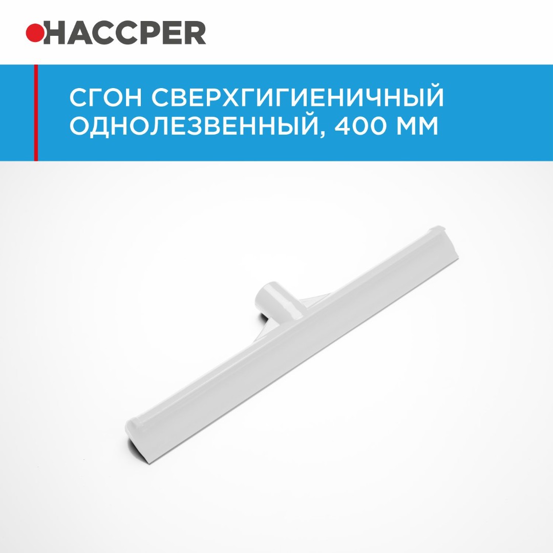 Сверхгигиеничный сгон HACCPER удобен в использовании и обработке, абсолютно гигиеничный. Используется на пищевых производствах и в HoReCa для быстрого и эффективного удаления большинства водных и пищевых остатков с поверхностей.