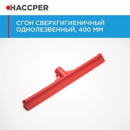 Сверхгигиеничный сгон HACCPER удобен в использовании и обработке, абсолютно гигиеничный. Используется на пищевых производствах и в HoReCa для быстрого и эффективного удаления большинства водных и пищевых остатков с поверхностей.
