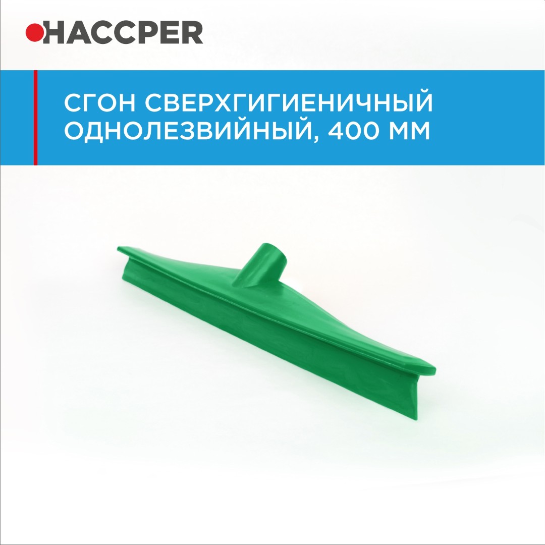 Сверхгигиеничный сгон HACCPER удобен в использовании и обработке, абсолютно гигиеничный. Используется на пищевых производствах и в HoReCa для быстрого и эффективного удаления большинства водных и пищевых остатков с поверхностей.