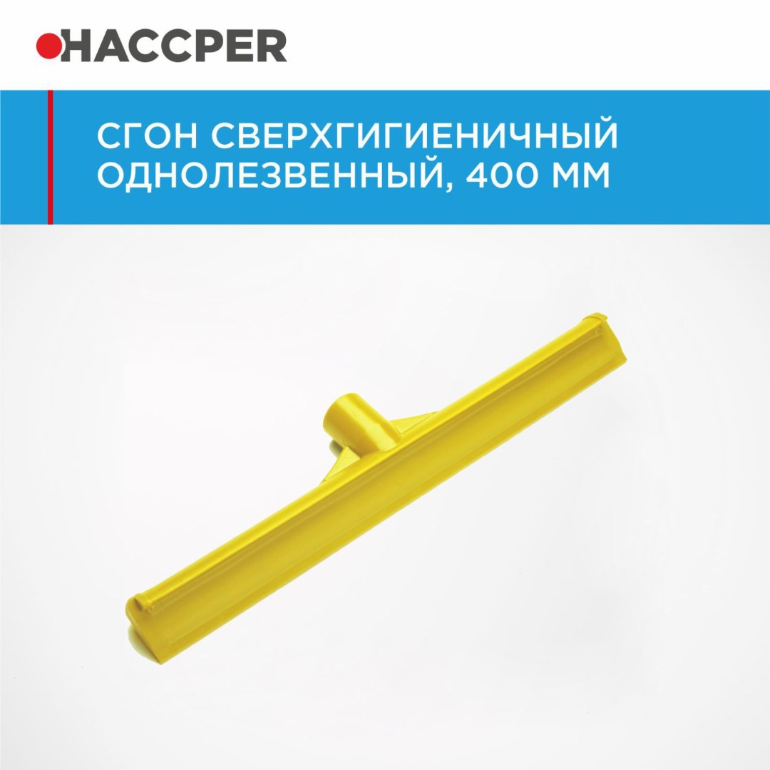 Сверхгигиеничный сгон HACCPER удобен в использовании и обработке, абсолютно гигиеничный. Используется на пищевых производствах и в HoReCa для быстрого и эффективного удаления большинства водных и пищевых остатков с поверхностей.