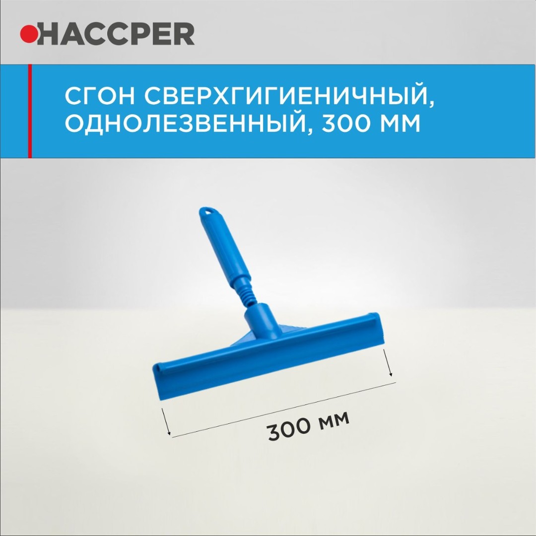 Сверхгигиеничный однолезвийный сгон Haccper идеально подходит для промежуточной и завершающей очистки рабочих поверхностей. Устраняет остатки загрязнений, пены и воды и оставляет поверхность идеально чистой.