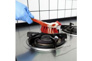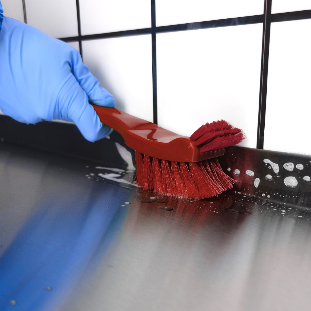 Ручная универсальная щетка с гребешком предназначена для мытья оборудования и любых видов рабочих поверхностей. Отлично подойдет для чистки труднодоступных мест: мытье газовых и электрических плит, раковин, сантехники, углов и стыков. Волнообразный ворс хорошо вбирает и отдает пену, что способствует экономии моющего средства. Антискользящая ручка с отверстием, которое позволяет повесить щетку на систему хранения. Это обеспечит быстрый доступ и экономию места. Цветокодированный профессиональный уборочный инвентарь.