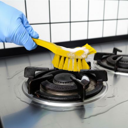 Ручная универсальная щетка с гребешком предназначена для мытья оборудования и любых видов рабочих поверхностей. Отлично подойдет для чистки труднодоступных мест: мытье газовых и электрических плит, раковин, сантехники, углов и стыков. Волнообразный ворс хорошо вбирает и отдает пену, что способствует экономии моющего средства. Антискользящая ручка с отверстием, которое позволяет повесить щетку на систему хранения. Это обеспечит быстрый доступ и экономию места. Цветокодированный профессиональный уборочный инвентарь.