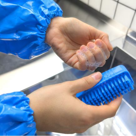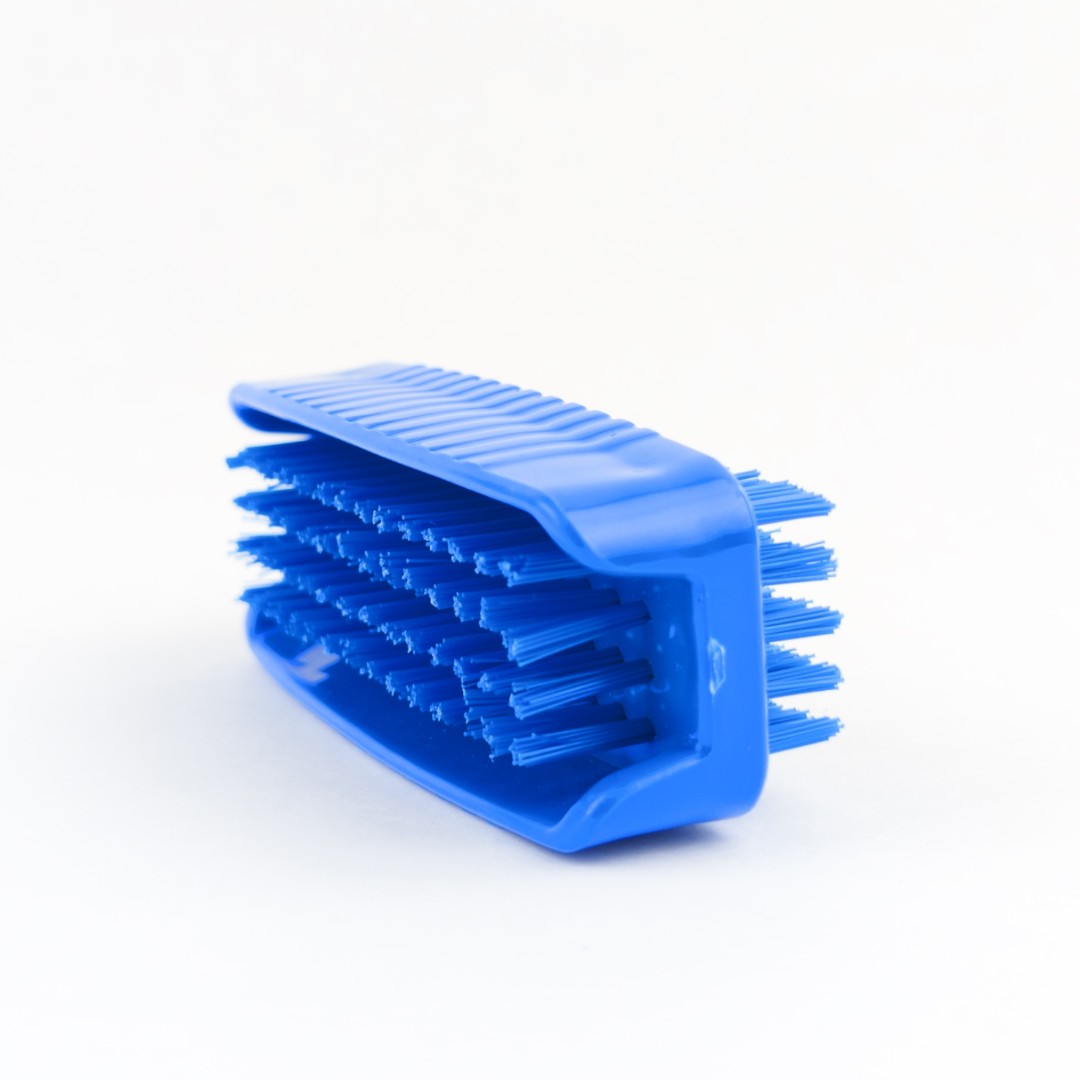 Двусторонняя ручная щетка предназначена для мытья и обработки рук, позволяет хорошо вычищать загрязнения из-под ногтей без вреда для кожи. Благодаря ребристым боковинам колодки щетка плотно и комфортно лежит в руке. Цветокодированный профессиональный уборочный инвентарь.