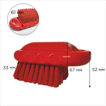 Щетка подойдет для мытья и очистки плоских поверхностей, разделочных досок, а также рук и ногтей. Щетка оптимального размера с плотным, густым ворсом, что обеспечивает быструю и качественную чистку ногтей. Щетина средней жесткости для эффективного и безопасного воздействия на кожу. Отверстие в колодке позволяет размещать щетку на системе хранения.