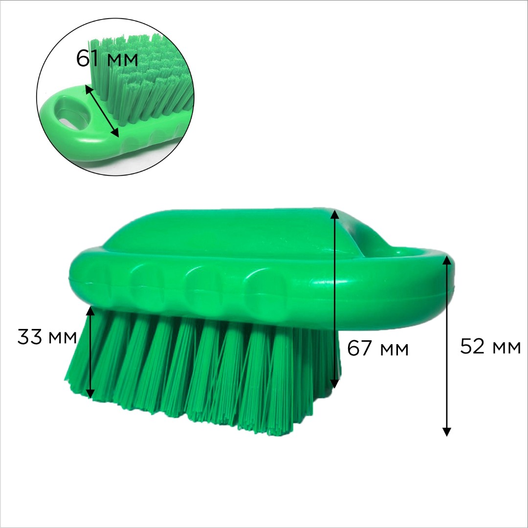 Щетка подойдет для мытья и очистки плоских поверхностей, разделочных досок, а также рук и ногтей. Щетка оптимального размера с плотным, густым ворсом, что обеспечивает быструю и качественную чистку ногтей. Щетина средней жесткости для эффективного и безопасного воздействия на кожу. Отверстие в колодке позволяет размещать щетку на системе хранения.