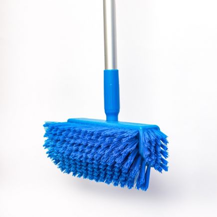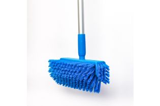 Изогнутое основание делает щетку универсальным и удобным инструментом для мытья стен, пола, в том числе под оборудованием. Боковые выступы упрощают мойку плинтусов и труднодоступных мест.