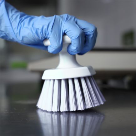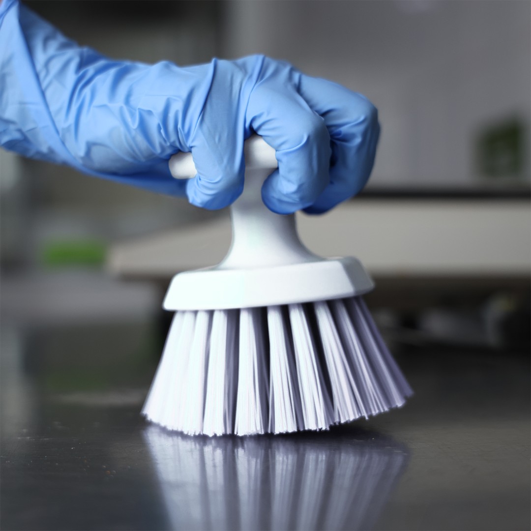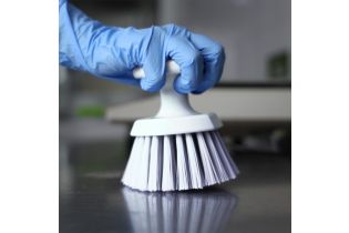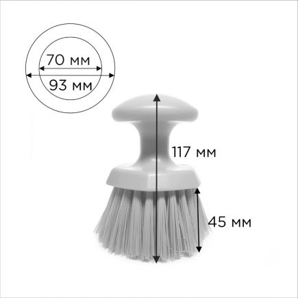 Ручная круглая щетка эффективно оттирает и очищает конвейерные ленты, пищевые контейнеры и другие поверхности. Имеет эргономичную конструкцию и круглую ручку, которая позволяет сильнее нажимать на щетку при использовании.