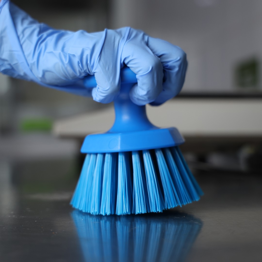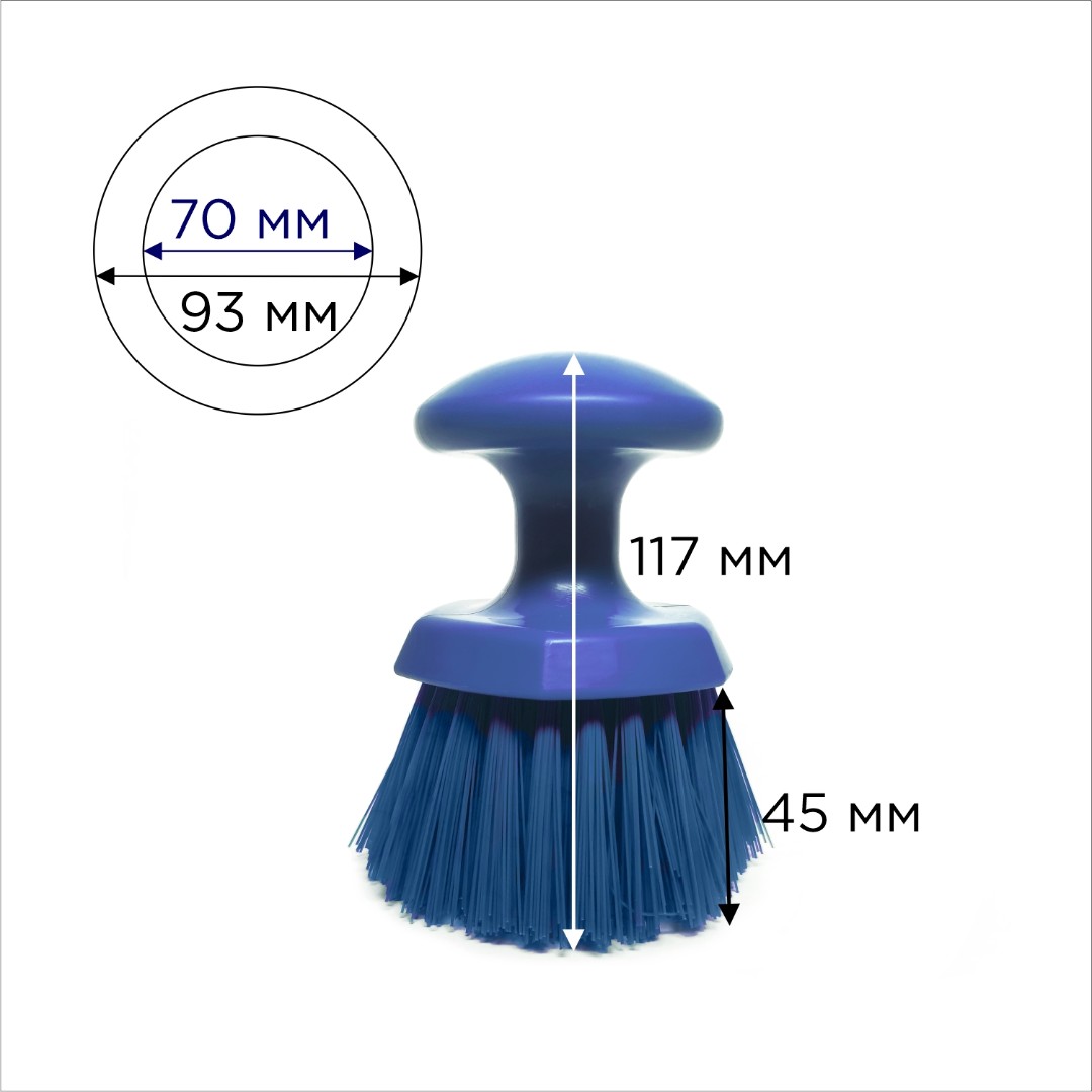 Ручная круглая щетка эффективно оттирает и очищает конвейерные ленты, пищевые контейнеры и другие поверхности. Имеет эргономичную конструкцию и круглую ручку, которая позволяет сильнее нажимать на щетку при использовании.