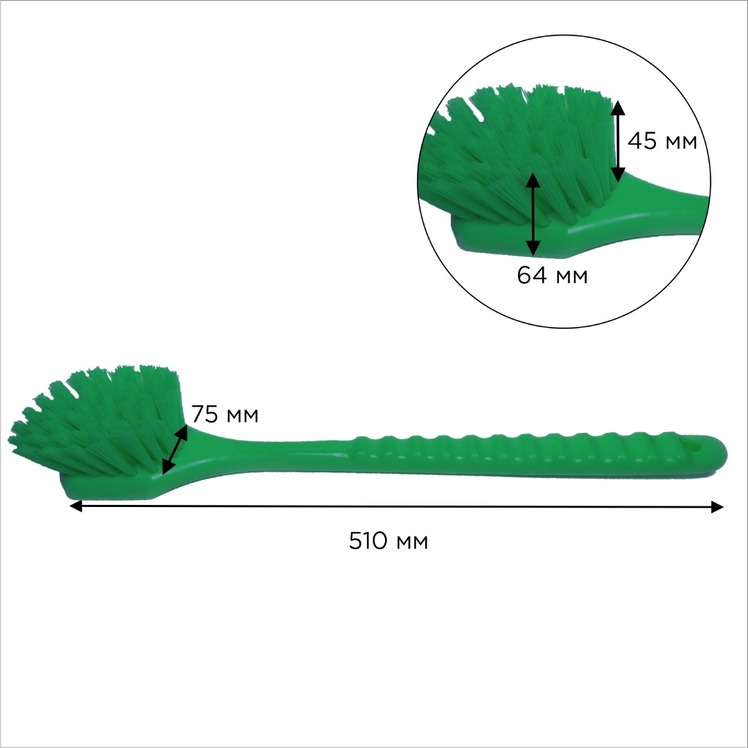Щётка предназначена для мытья и оттирки больших производственных емкостей, чанов и котлов. Длинная ручка позволяет добраться до труднодоступных мест оборудования, быстро и качественно провести мойку. Также подойдет для удаления загрязнений с рабочих поверхностей, высоких конструкций и стеллажей. Перед использованием в зонах риска для продуктов питания, новые инструменты необходимо помыть и продезинфицировать.