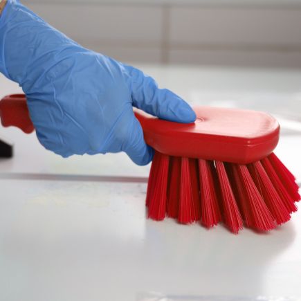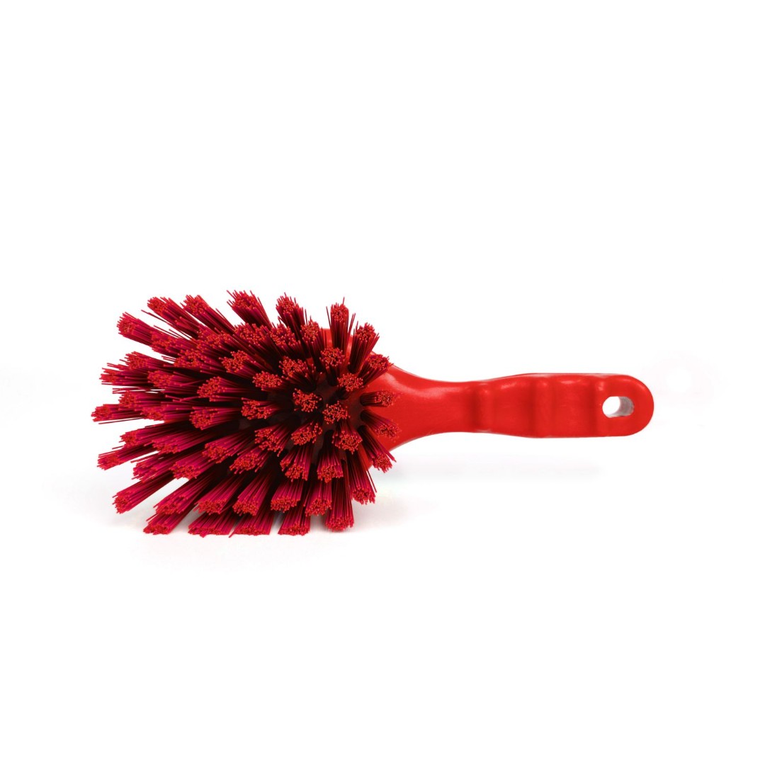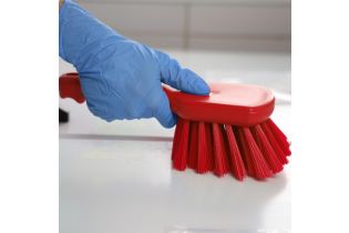 Ручная жесткая щетка предназначена для оттирки сильных загрязнений, мытья оборудования или кухонных принадлежностей. Подойдет для очистки углов, стыков, труднодоступных мест и любых рабочих поверхностей. Эргономичная форма ручки обеспечивает удобный захват рукой. Устойчива к химикатам, дезинфектантам и автоклавированию. Цветокодированный профессиональный уборочный инвентарь.