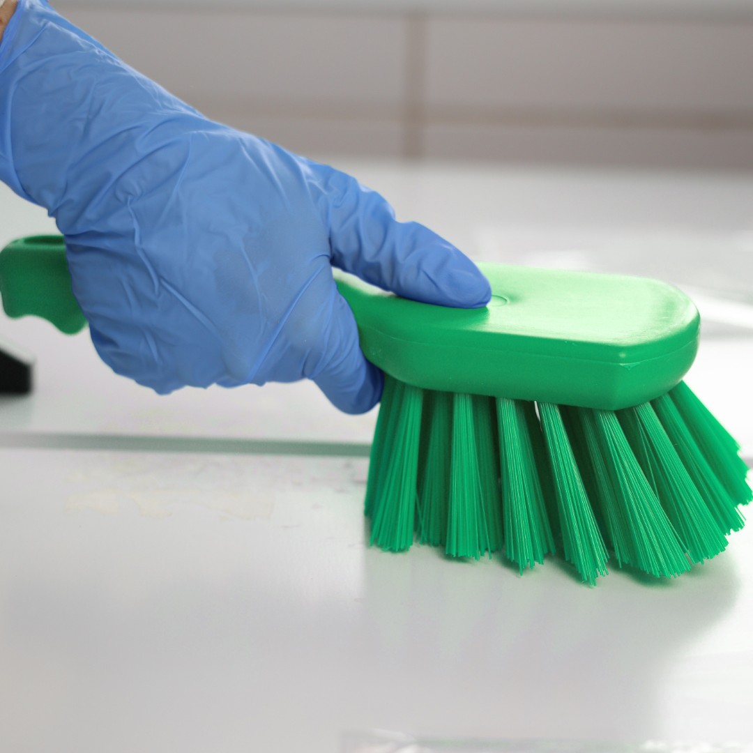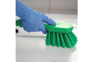 Ручная жесткая щетка предназначена для оттирки сильных загрязнений, мытья оборудования или кухонных принадлежностей. Подойдет для очистки углов, стыков, труднодоступных мест и любых рабочих поверхностей. Эргономичная форма ручки обеспечивает удобный захват рукой. Устойчива к химикатам, дезинфектантам и автоклавированию. Цветокодированный профессиональный уборочный инвентарь.