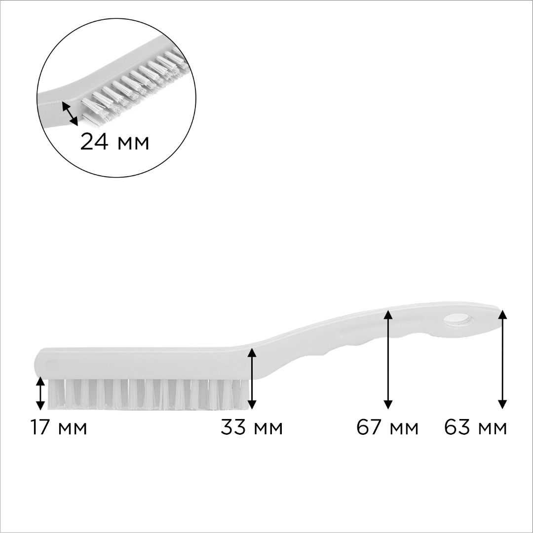 Щетка с короткой жесткой щетиной предназначена для очистки труднодоступных мест, таких как плиты, раковины и вытяжки, от загрязнений. Подойдет для использования на профессиональной кухне: для производственного, ресторанного оборудования, которое требует тщательной очистки. Эргономичная ручка обеспечивает удобный захват, а отверстие на ней позволяет повесить щетку на систему хранения. Это обеспечит быстрый доступ и экономию места. Можно использовать в домашних условиях.