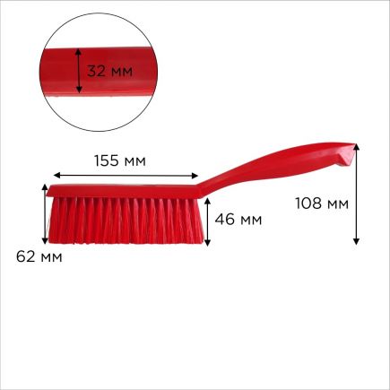 Щетка подойдет для очистки рабочей поверхности от сухих остатков пищи, мусора или пыли. Имеет прямую, мягкую, густую щетину, за счет чего оптимальна для уборки мелкого мусора. Легко моется и не требует особого ухода. Корпус из полипропилена отличается прочностью и стойкостью к износу. Удобная эргономичная ручка позволяет легче справляться с уборкой в труднодоступных местах.