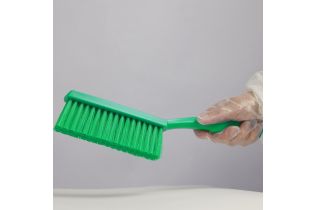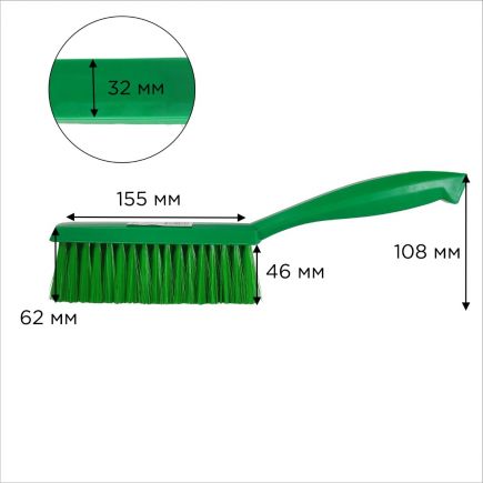 Щетка подойдет для очистки рабочей поверхности от сухих остатков пищи, мусора или пыли. Имеет прямую, мягкую, густую щетину, за счет чего оптимальна для уборки мелкого мусора. Легко моется и не требует особого ухода. Корпус из полипропилена отличается прочностью и стойкостью к износу. Удобная эргономичная ручка позволяет легче справляться с уборкой в труднодоступных местах.
