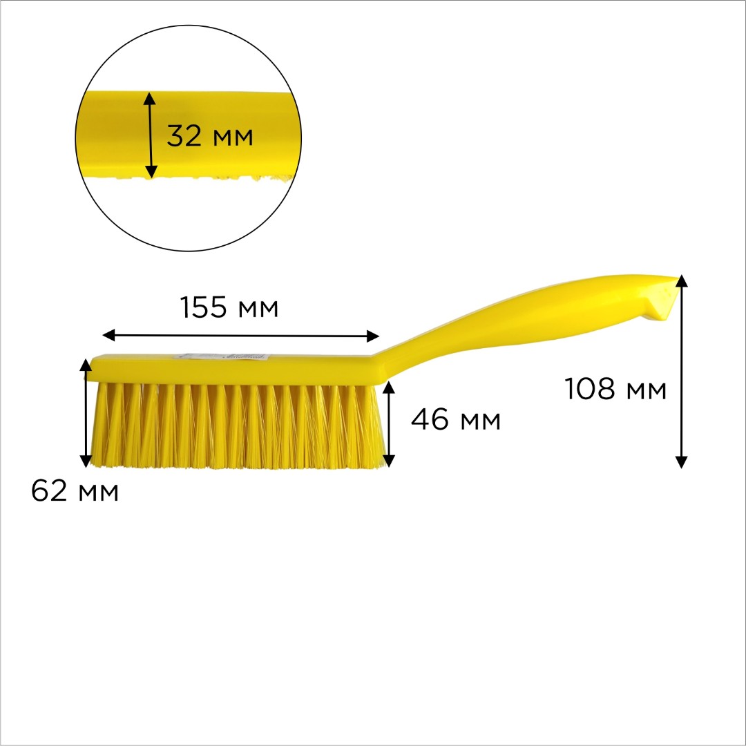 Щетка подойдет для очистки рабочей поверхности от сухих остатков пищи, мусора или пыли. Имеет прямую, мягкую, густую щетину, за счет чего оптимальна для уборки мелкого мусора. Легко моется и не требует особого ухода. Корпус из полипропилена отличается прочностью и стойкостью к износу. Удобная эргономичная ручка позволяет легче справляться с уборкой в труднодоступных местах.