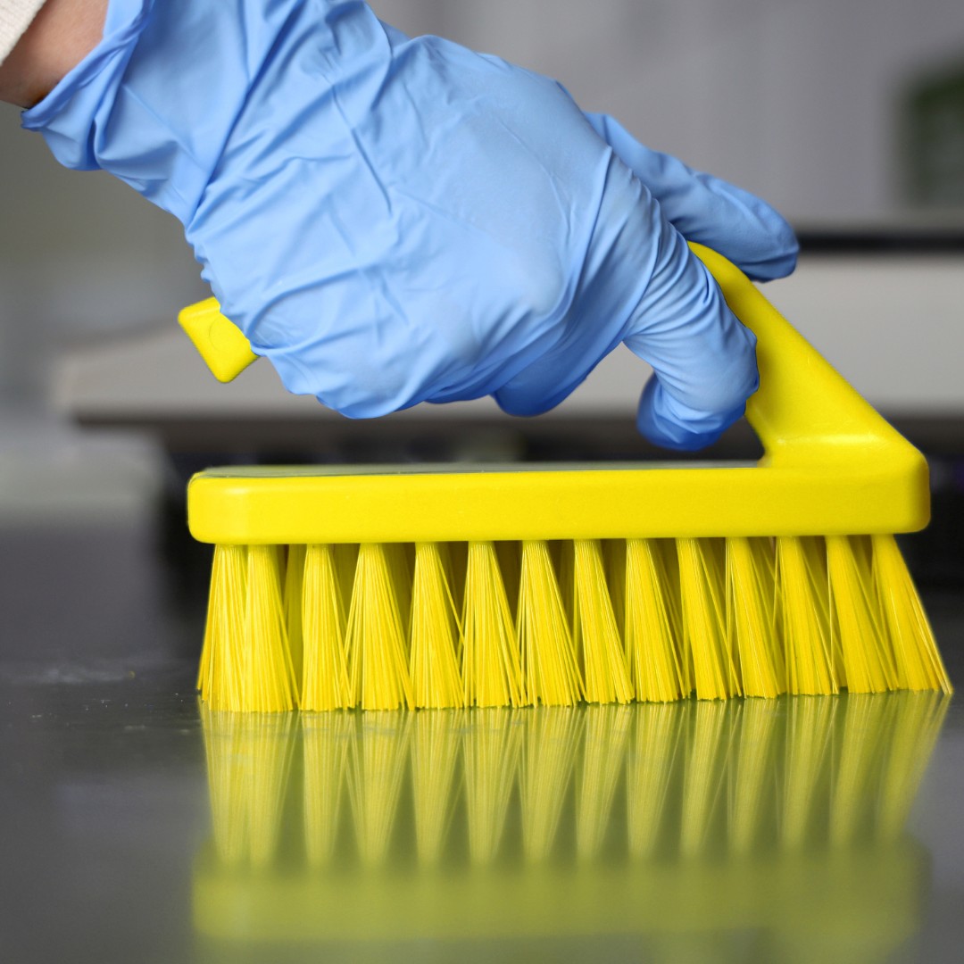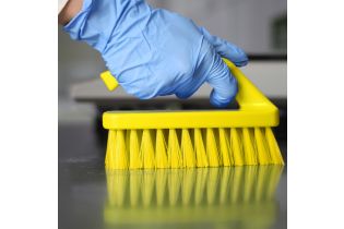 Универсальная ручная щетка предназначена для чистки столов, конвейерных лент, разделочных досок, ведер, больших мерных ковшей и оборудования с труднодоступными углами и углублениями.
