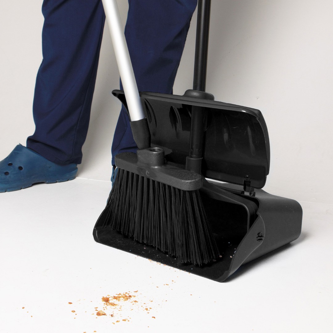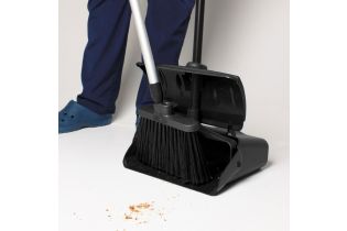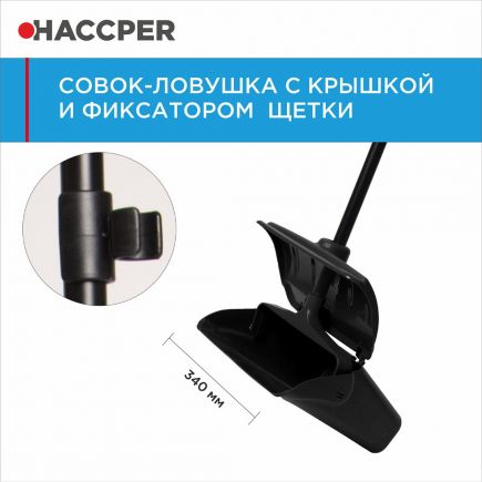 Совок-ловушка - удобное решение для сбора мусора. Тонкий скошенный край совка специально разработан таким образом, чтобы облегчить заметание мусора на совок. На задней части совка расположены колесики, облегчающие его перемещение, когда он наполнен. Рукоятка оснащена фиксатором для крепления щетки.