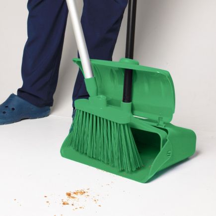 Совок-ловушка - удобное решение для сбора мусора. Тонкий скошенный край совка специально разработан таким образом, чтобы облегчить заметание мусора на совок. На задней части совка расположены колесики, облегчающие его перемещение, когда он наполнен. Рукоятка оснащена фиксатором для крепления щетки.