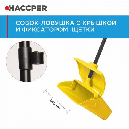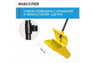 Совок-ловушка - удобное решение для сбора мусора. Тонкий скошенный край совка специально разработан таким образом, чтобы облегчить заметание мусора на совок. На задней части совка расположены колесики, облегчающие его перемещение, когда он наполнен. Рукоятка оснащена фиксатором для крепления щетки.