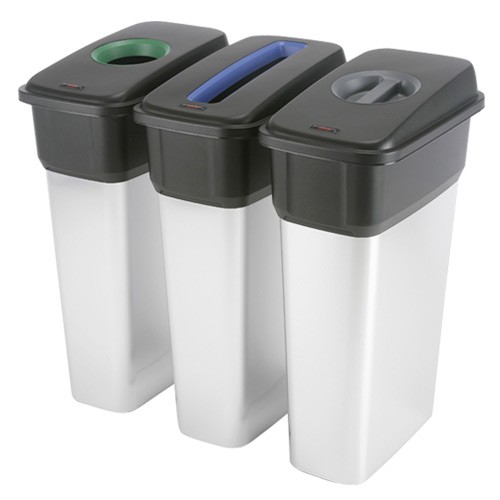Контейнеры ГЕО от компании Vileda Professional предлагаются в 2 размерах (55 и 70 литров) с различными вариантами крышек (с ручкой, с креплением на стену, с отверстием для бумаги, с отверстием для бутылок с цветной кодировкой) для удобства сортировки мусора.