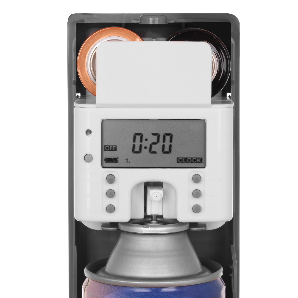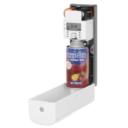 Устройство можно запрограммировать в зависимости от особенностей помещения:- интервал срабатываний (освежитель может распыляться с интервалом от 1 до 60 минут);- часы начала и окончания работы устройства в течении суток;- дни недели, включая или исключая выходные. Корпус ароматизатора закрывается на ключ для предотвращения хищений баллонов с освежителем воздуха и батареек. Работа от батареек делает устройство независимым от наличия электро подключения в помещении, а небольшие размеры и вес позволяют установить освежитель в любом месте. Работает от двух батареек типа D/LR20 Подходит для баллонов типа ЕВРО от 250 мл до 320 мл.