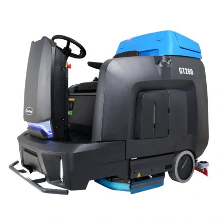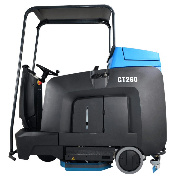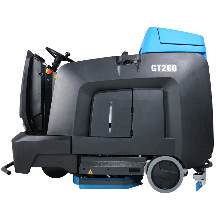 Почему уклоны — это важно даже «на ровном» объекте. Въезды/съезды паркинга, пандусы у доков, сервисные переходы между уровнями — почти на каждом объекте есть наклонные участки. На них вода стремится вниз, а обычные машины оставляют подтёки. GT260 B106 создана именно для таких зон: держит уборку на уклонах до 14%, не теряя тяги и качества сбора.