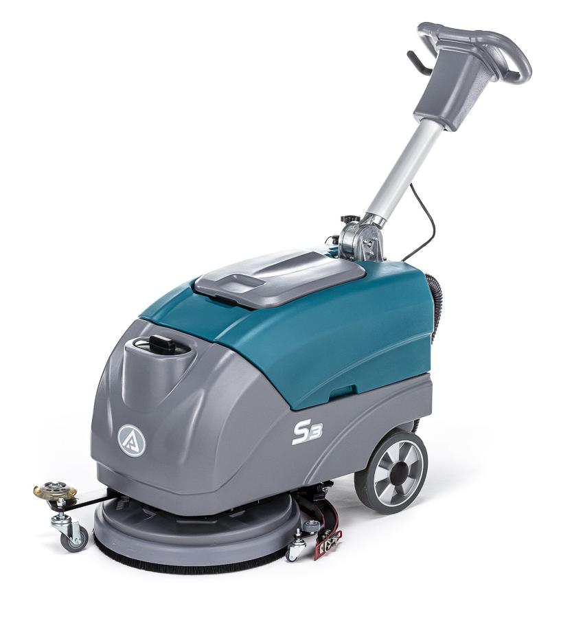 AR-S3L — компактная и легкая поломоечная машина для ежедневной уборки различных объектов от торговых центров, до производственных помещений. Рабочая ширина 400 мм подходит для работы в стесненных условиях. Управление интуитивно понятное: подвижная рукоятка с регулировкой угла наклона и электронная панель на которой расположены кнопки управления машиной и индикатор заряда.