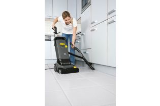 Сверхкомпактная сетевая поломойно-всасывающая машина BR 30/4 C Ep Adv благодаря вертикальному дизайну, такая же маневренная, как и вертикальный пылесос. Давление прижима щётки устройства в 10 раз больше, чем у обычной швабры. Роликовая щётка вращается со скоростью 1500 об/мин. Машина собирает воду, как при движении вперёд, так и назад. Для удаления стойких загрязнений всасывающая балка может быть поднята при помощи ножной педали. Это позволяет размыть стойкие загрязнения с последующим их удалением. Идеально подходит для уборки небольших магазинов, ресторанов, заправочных станций, супермаркетов, медицинских кабинетов, отелей и закусочных. Эту модель также можно использовать в дополнение к большим поломоечным машинам для решения специальных задач. Дополнительно имеет функцию всасывания с помощью ручной насадки, что незаменимо для удаления влаги из самых труднодоступных мест. Также подходит что чистки ковровых покрытий (необходимо использовать дополнительный монтажный комплект для чистки ковров)